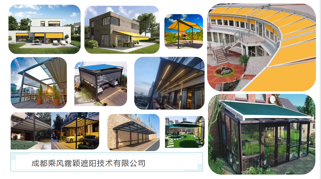 成都乘風(fēng)露穎遮陽(yáng)技術(shù)有限公司是四川及西南地區(qū)研發(fā)、生產(chǎn)、銷(xiāo)售高端戶(hù)外及室內(nèi)遮陽(yáng)篷 雨篷 電動(dòng)伸縮遮陽(yáng)棚制品的專(zhuān)業(yè)戶(hù)外用品生產(chǎn)廠(chǎng)家之一,公司下設(shè)設(shè)計(jì)研發(fā)部、生產(chǎn)部、工程部 、銷(xiāo)售部 、安裝部、 財(cái)務(wù)部、推廣部、售后服務(wù)部等部門(mén)。我們一直堅(jiān)持吸收歐美遮陽(yáng)蓬 雨棚先進(jìn)設(shè)計(jì)理念和生產(chǎn)技術(shù),不斷追求品質(zhì)、服務(wù)和創(chuàng)新,現(xiàn)今已生產(chǎn)和銷(xiāo)售多種高端遮陽(yáng)棚 雨篷系列戶(hù)內(nèi)外用品。 成都乘風(fēng)露穎遮陽(yáng)所生產(chǎn)的伸縮遮陽(yáng)篷均采用高強(qiáng)度加厚鋁合金制成,抗風(fēng)力強(qiáng),收放自如,使用壽命長(zhǎng)等優(yōu)點(diǎn);蓬面采用集合成纖維的優(yōu)點(diǎn)